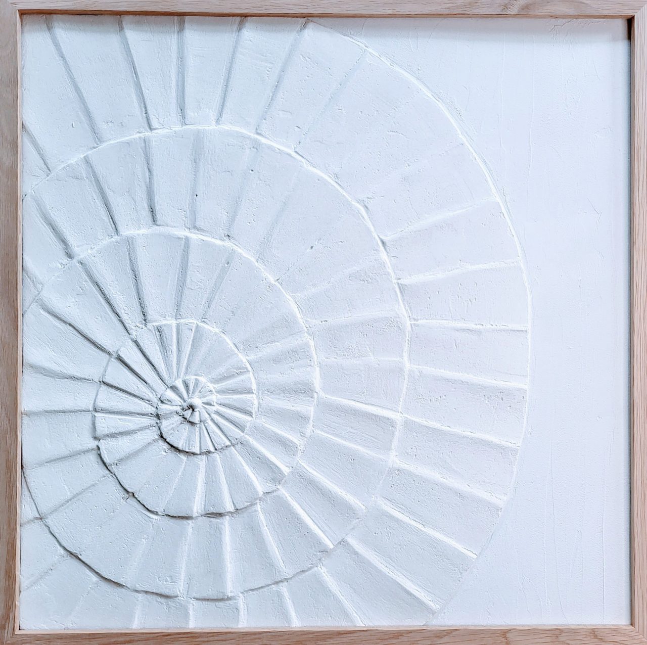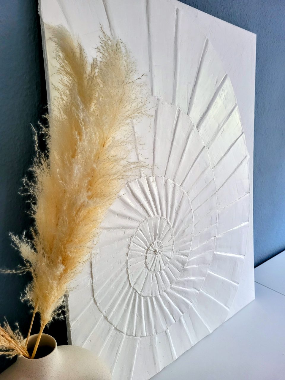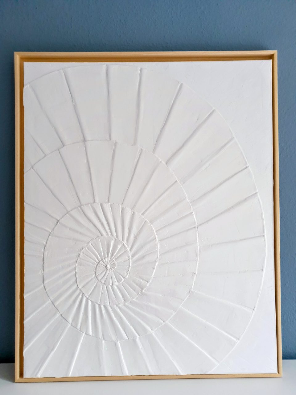 Ihr Lieben, lange gab es keinen neuen Beitrag auf der Nina&Frida Seite, aber wie viele bestimmt wissen, gibt es auf dem Instagram Account fast jeden Tag neue Stories und mehrmals die Woche neue Posts. Also schaut unbedingt vorbei. Hier stelle ich euch heute das absolute Nina&Frida Signature-Bild, den „Ammonit“ vor. Inspiriert von den kleinen, versteinerten Uhrzeittierchen aus dem Meer, mit ihren faszinierenden spiralförmigen Schalen. Das Bild ist monochrom in Creme gehalten, modern und natürlich mit viel Struktur.